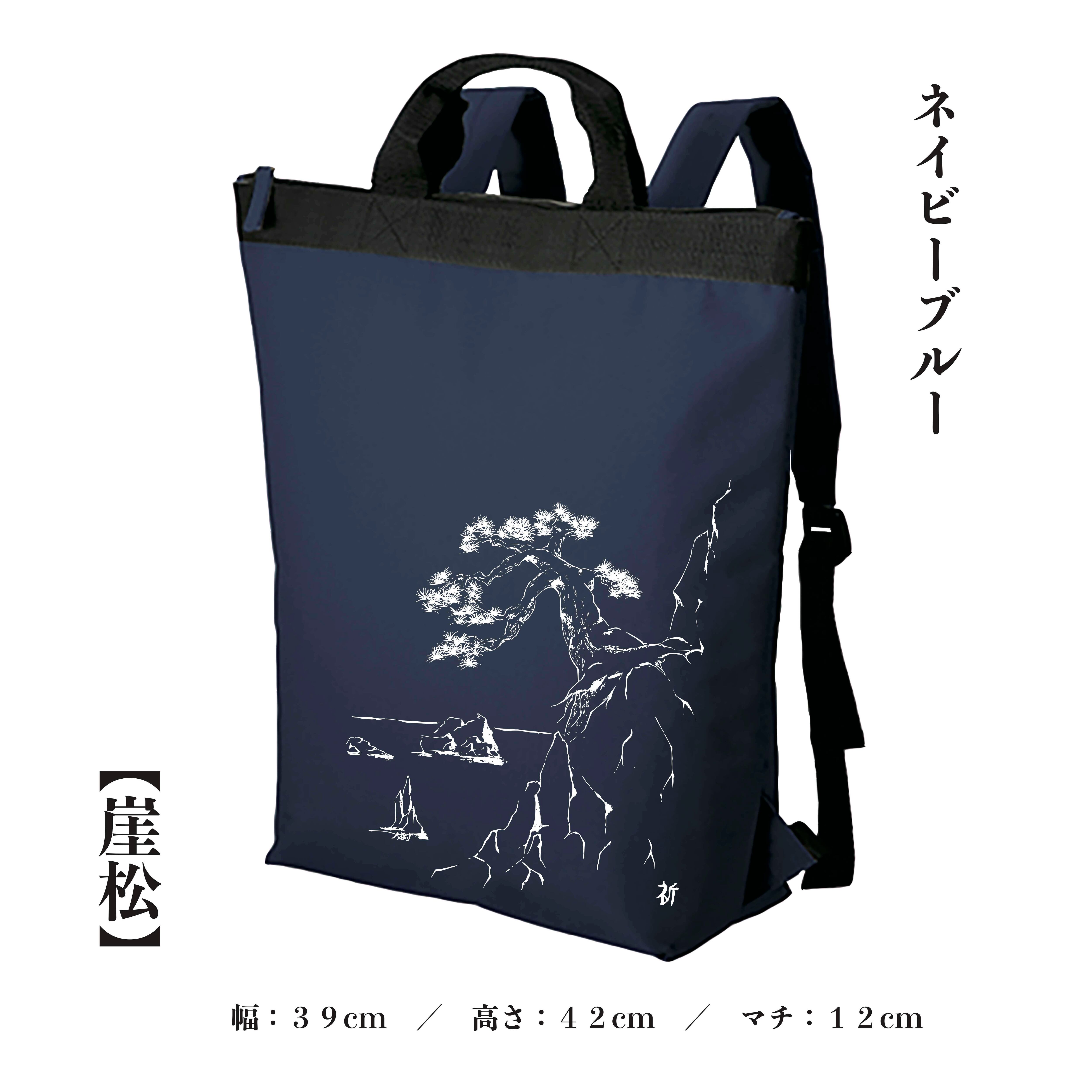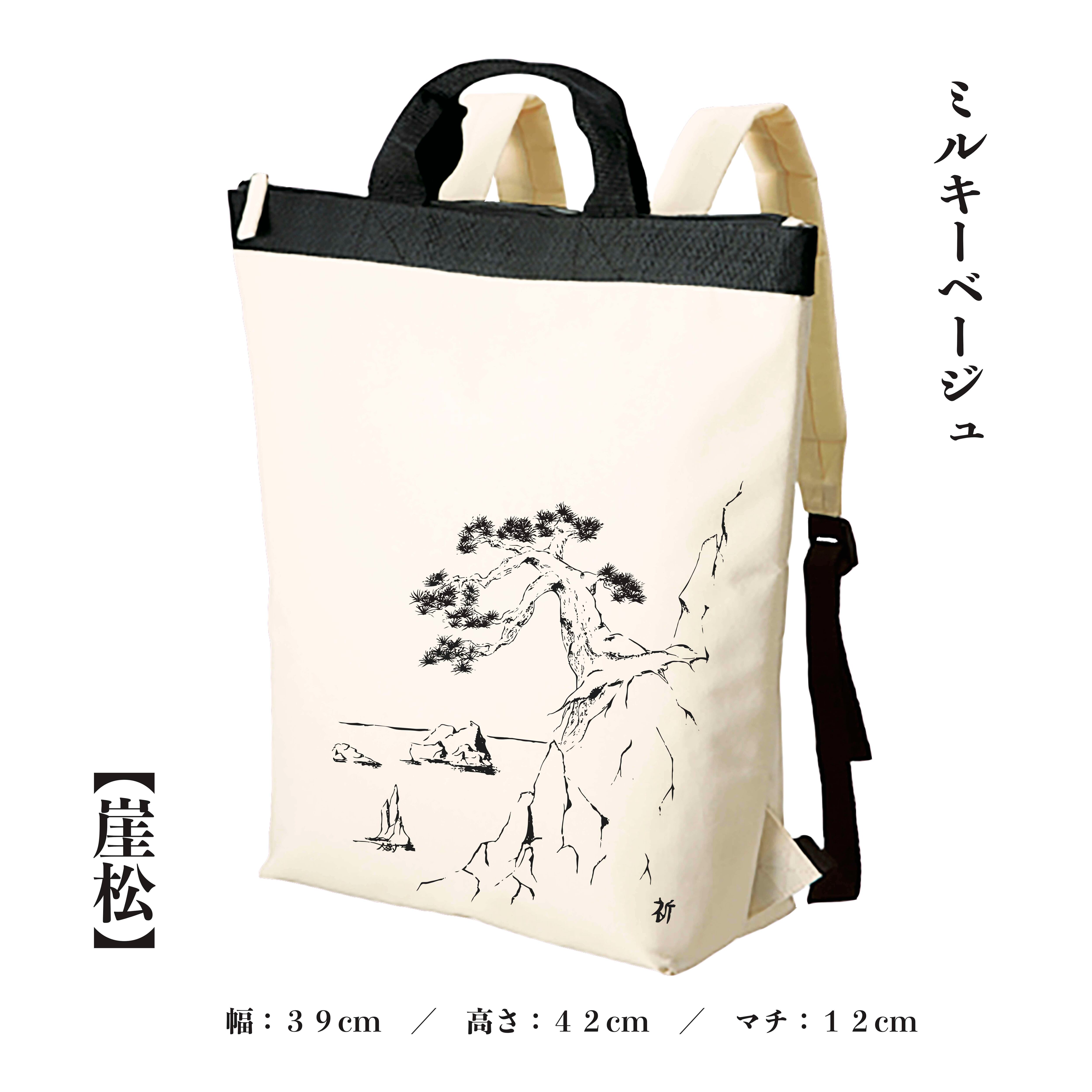 姿、形は様々で個性!「そんな崖の松の様な力強さを芯に持って生きていきたい」そんな思いを込めて描いた墨絵をプリントしました。